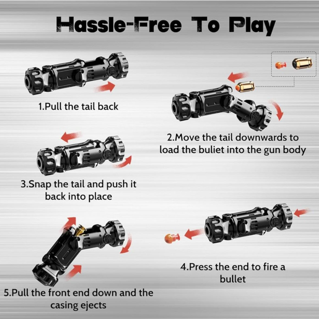 Each set comes with 20 Free Soft Plastic Bullets designed for safe indoor use. They’re lightweight, smooth, and won’t cause damage, just pure fun and focus.